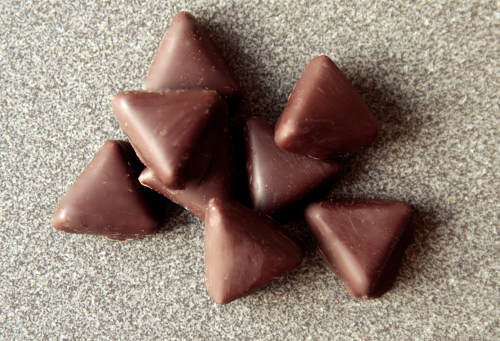 Zutaten: Zucker, Glukosesirup, Zartbitterschokolade (mind. 60% Kakaoanteil), Kakaomasse, Kakaobutter, Vollmilchpulver, Emulgator: Sojalecithin, natürlicher Vanilleextrakt, Lakritzextrakt, Salmiaksalz, Chilliöl, Menthol, Anisöl