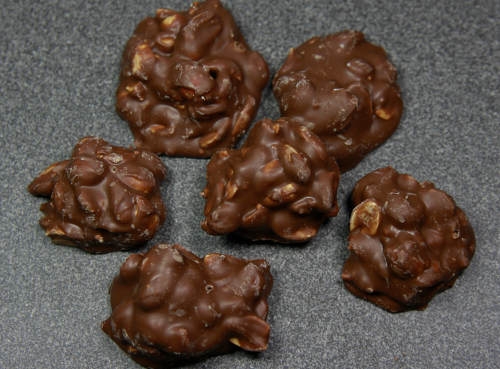 Zutaten: Zucker, 40% blanchierte Mandeln, Glukosesirup, fettarmes Kakaopulver, Feuchthaltemittel Invertase